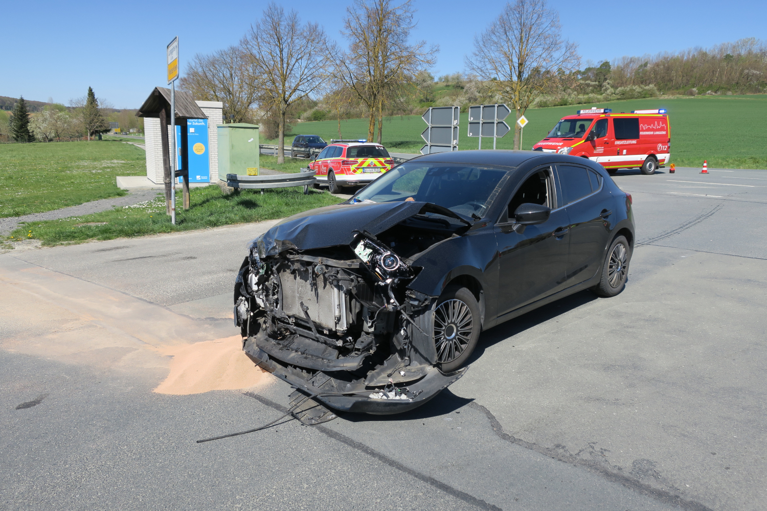 Am 16.04.2022 wurde die Feuerwehr Langgöns mit den Ortsteilen Dornholzhausen. Lang-Göns und Niederkleen, sowie dem Rettungsdienst zu einem Verkehrsunfall alarmiert. Im Kreuzungsbereich der L3133 und L3129 am Ortseingang Niederkleen waren zwei PKW zusammengestoßen. Durch ein in einem der Unfallfahrzeuge installierten E-Call System wurde umgehend ein Notruf abgesetzt. Die alarmierten Einsatzkräfte fanden zwei stark beschädigte Fahrzeuge vor. Die beteiligten Personen waren nicht in ihren Fahrzeugen eingeschlossen. In Zusammenarbeit mit dem Rettungsdienst wurden insgesamt drei Beteiligte vor Ort erstversorgt und durch den Rettungsdienst in umliegende Krankenhäuser gebracht. Die Feuerwehr sicherte zusätzlich die Einsatzstelle gegen den fließenden Verkehr ab. Auslaufende Betriebsstoffe wurden aufgenommen. Es waren die Polizei, der Rettungsdienst mit drei Rettungswagen und einem Notarzteinsatzfahrzeug, sowie die Feuerwehr Langgöns mit sechs Fahrzeugen und 30 Einsatzkräften im Einsatz. |