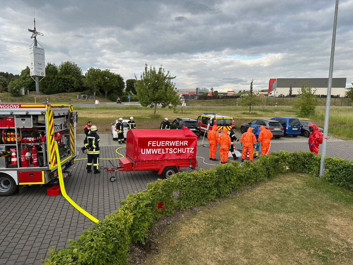 Die Not-Dekontaminationsstelle wurde von der Einsatzabteilung Niederkleen aufgebaut und betrieben. Im Verlauf der Übung wurden mehrere praxisnahe Szenarien unter CSA-Bedingungen abgearbeitet, darunter das Abdichten eines auslaufenden Fasses, die Rettung einer verunfallten Person sowie das Arbeiten an einem Flansch zur Schulung der Feinmotorik.