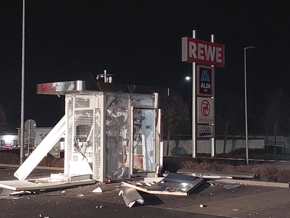 Heute Morgen gegen kurz vor drei Uhr wurde die Feuerwehr Langgöns mit dem Ortsteil Lang-Göns alarmiert. Der Geldautomat am Lindenbaum war durch Unbekannte gesprengt worden. Die Feuerwehr unterstützte die Arbeit der Polizei. Das Trümmerfeld um die Überreste des Geldautomaten wurde ausgeleuchtet. Um 5 Uhr konnte der Einsatz von der Feuerwehr beendet werden. Die vorhandene Parkplatzbeleuchtung hatte die Aufgabe der Feuerwehr übernommen. Es waren drei Fahrzeuge mit zehn Einsatzkräften vor Ort. |