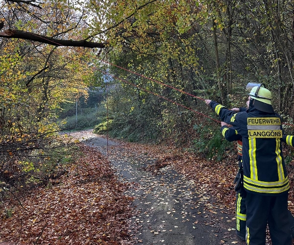 Am Vormittag des 30.10.2022 wurde die Feuerwehr Langgöns mit der Löschgruppe Cleeberg in den Schaafhausweg nach Cleeberg alarmiert. Oberhalb der Zufahrt zur Schützenhalle drohte ein Ast abzustürzen. Der ca. 20 Zentimeter dicke Ast einer Buche in einer Höhe von etwa drei Metern ragte über die Straße. Der Ast wurde mit Hilfe der Motorkettensäge entfernt und die Straße gereinigt. Es war ein Fahrzeug mit sieben Einsatzkräften im Einsatz. |