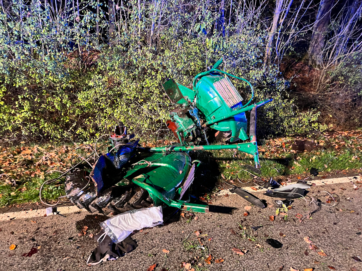 - Am Abend des 07.11.2022 kam es erneut zu einem Unfall zwischen einem Traktor und einem PKW. Der Einsatzort befand sich auf der L3133 zwischen Rechtenbach und Dornholzhausen. Die Ortsteile Dornholzhausen und Niederkleen rückten umgehend aus. Durch den Zusammenstoß der beiden Fahrzeuge war der Traktor in mehrere Teile zerbrochen. Der PKW kam neben der Fahrbahn zum stehen. Bei dem Zusammenstoß wurden beide Fahrzeugführer verletzt. Diese wurden durch den Rettungsdienst in umliegende Kliniken gebracht. Die Feuerwehr sicherte die Einsatzstelle gegen den fließenden Verkehr ab. Für die Unfallursachenermittlung wurde die Unfallstelle ausgeleuchtet. Es waren vier Fahrzeuge mit 20 Einsatzkräften der Feuerwehr Langgöns, der Rettungsdienst und die Polizei im Einsatz.