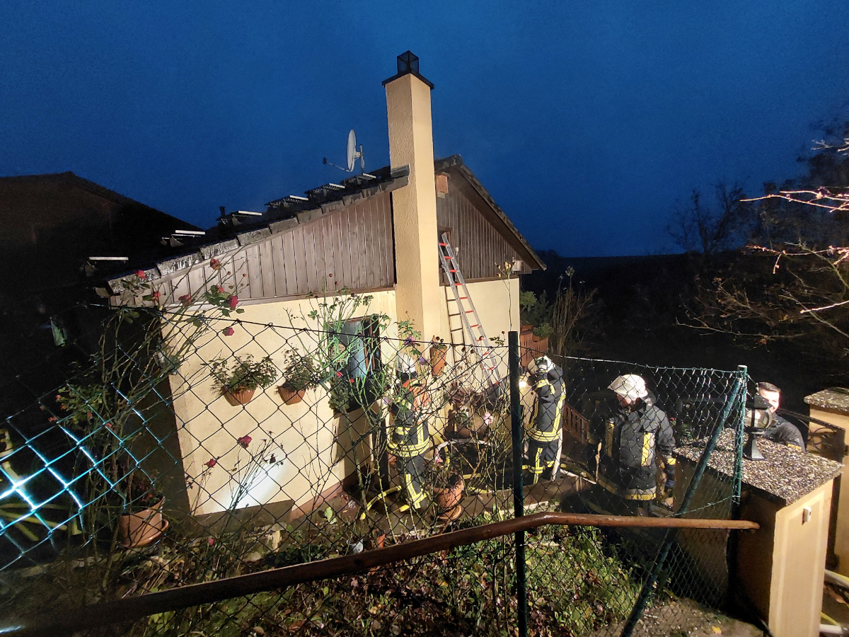Mit dem Einsatzstichwort "Kaminbrand" wurde die Feuerwehr Langgöns mit den Ortsteilen Cleeberg, Lang-Göns, Oberkleen, die Drehleiter aus Pohlheim und ein Rettungswagen am Sonntagnachmittag in die Straße "Dachsgang" in Cleeberg alarmiert. Vor Ort stellte sich heraus, dass Verkleidung und Dämmung um den Kamin in Brand geraten waren. Die Bewohner hatten das Gebäude beim Eintreffen der Feuerwehr bereits verlassen und wurden durch Feuerwehr und Rettungsdienst betreut. Einige Holzbalken des Gebäudes standen im Brand, der gesamte Dachboden war stark verraucht. Mit insgesamt 5 Trupps unter Atemschutz ist es gelungen die Wände und Decken mit Brechwerkzeugen zu öffnen und den Brand gezielt zu bekämpfen. Dabei haben die eingesetzten Feuerwehrleute auf einen effizienten Wassereinsatz geachtet, um den Wasserschaden im Gebäude so gering wie möglich zu halten. Im Verlauf des Einsatzes wurden zwei weitere Löschgruppen aus Niederkleen und Espa sowie der Gerätewagen Logistik aus Lang-Göns nachalarmiert. Das Haus ist vorerst unbewohnbar, die Bewohner sind bei Verwandten untergekommen. Durch das schnelle und effiziente Eingreifen der Feuerwehr konnte ein deutlich höherer Sachschaden verhindert werden. Die Polizei hat die Brandursachenermittlungen aufgenommen. Es waren zwölf Fahrzeuge mit 56 Einsatzkräften der Feuerwehr Langgöns, die Drehleiter aus Pohlheim sowie ein Rettungswagen vor Ort.