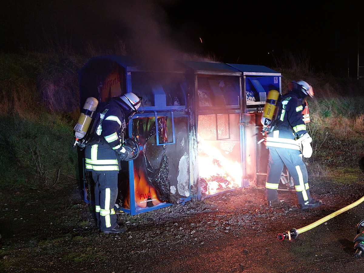 Am 07.12.2024 gegen 21:15 Uhr gerieten in Lang-Göns zwei Kleidercontainer in Brand. Durch die alarmierte Feuerwehr wurden die Container gewaltsam geöffnet. Der Inhalt wurde abgelöscht. Anschließend wurde der Inhalt entleert und auf Glutnester abgesucht. Ein weiterer Container wurde durch das Feuer beschädigt. Die Feuerwehr Langgöns war mit einem Fahrzeug und sechs Einsatzkräften vor Ort. Ebenfalls waren die Ordnungspolizei der Gemeinde Langgöns und die Landespolizei zur Brandursachenermittlung vor Ort.