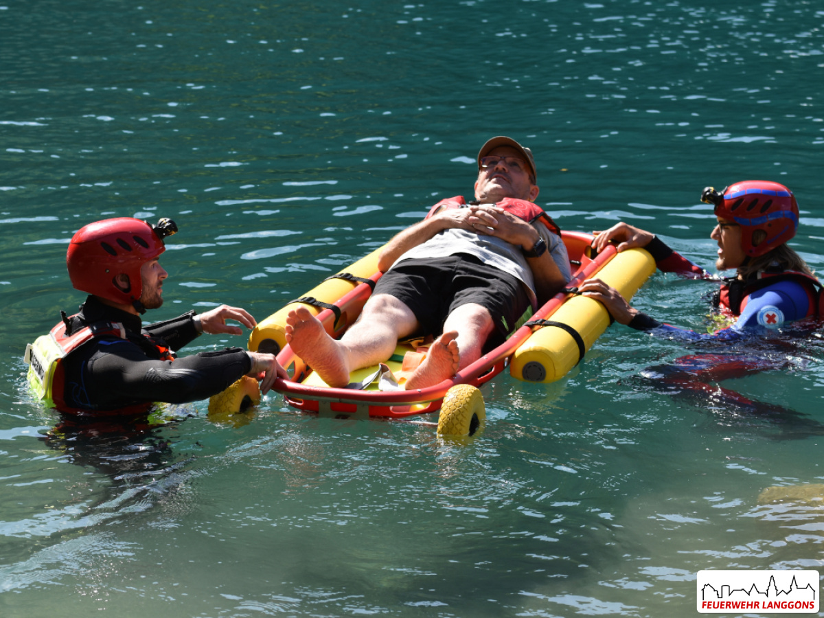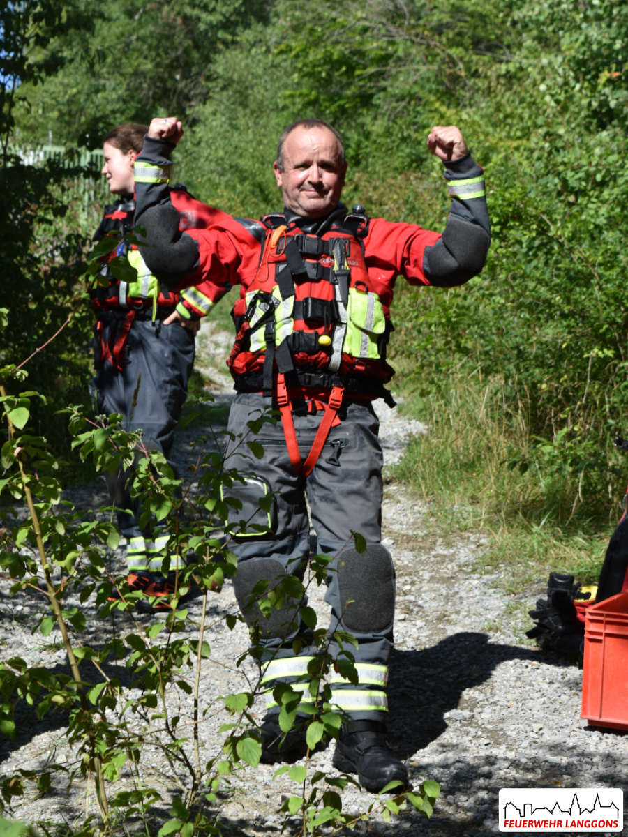 An verschiedenen Stationen kamen Trockenanzüge, Wurfbeutel und eine Schleifkorbtrage zum Einsatz. So wurden unterschiedliche Szenarien der Wasserrettung trainiert. Die Feuerwehr bereitet sich damit nicht nur auf mögliche Einsätze am Steinbruchsee, sondern auch auf Hochwasserlagen vor. Das Wasser war an diesem Tag erfrischend kühl, die Stimmung hervorragend – und die Zusammenarbeit beider Organisationen ein voller Erfolg.